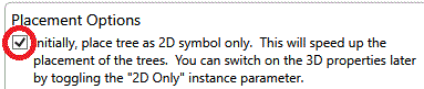 Existing Trees are not placed in 3D View in the project if Place Selected Trees is selected with the 2D Symbol Only toggle on.