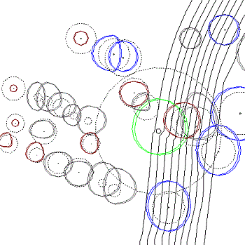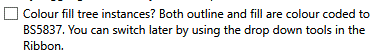 Existing Trees are placed in 2D view with an outline colour fill if Place Selected Trees is selected with the Colour Fill Tree Instances toggle unselected.