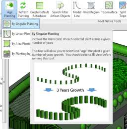 As the Years slider-bar is moved to the right, the number of years to Grow the planting increases and the grow Years, Height and Spread fields are automatically updated. Plant height and spread values increase up to the ultimate dimensions based on the number of years plants/species take to reach maturity.