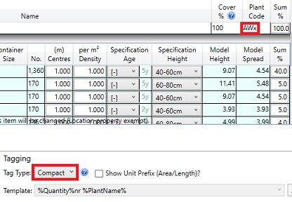 The Compact label option requires a Plant Code to be defined for the individual plant or mix (e,g, AWx below).
