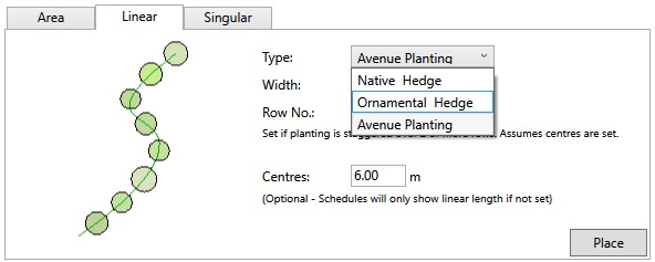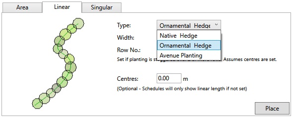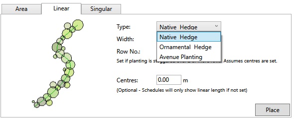 Linear Concept Planting offers a number of options via the Type drop-down menu.