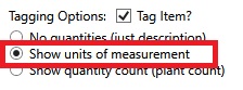Select 'Show units of measurement' to create a descriptive tag and measurement for Concept Planting.