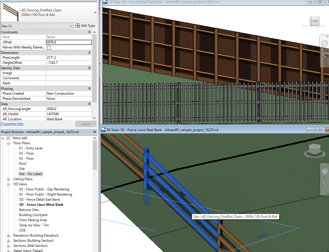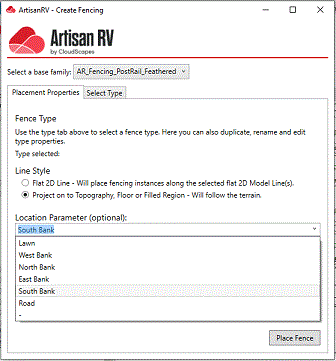 Fencing is defined by selecting a Base Fencing Family and parametric Fencing Type and is placed in the model using a Location parameter (if required) to structure project data.