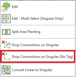To disassociate Single Planting that has been connected without tagging, pick Drop Connections on Singular (No Tag) from the Edit Planting pop-down menu.