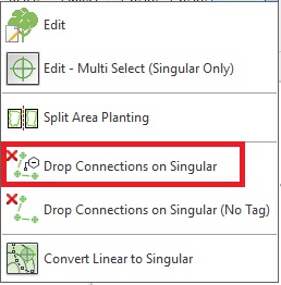 To disassociate Single Planting that has been connected, pick Drop Connections on Singular from the Edit Planting pop-down menu.