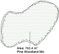 It is common practice to apply hatch patterns to projected areas when viewed in Plan view and options are available to apply an Edge Graphic and Fill Pattern to the Area planting when viewed in Plan view.