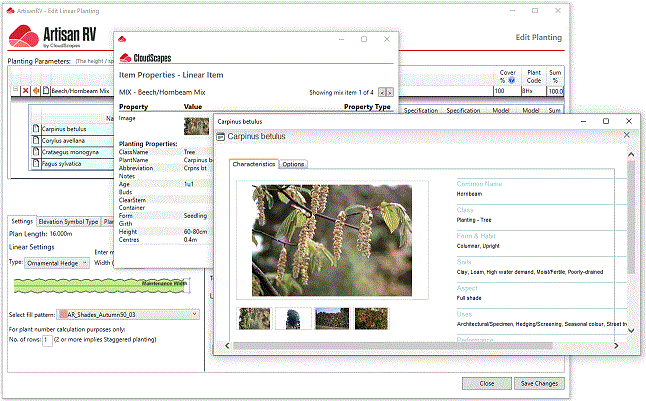Pick on the plant photo icon to display the associated plant characteristics and performance information.