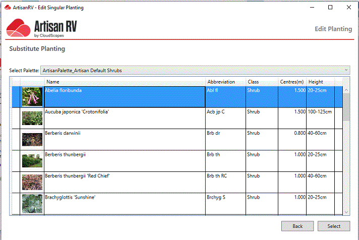 Pick the Substitute Icon (orange arrow) to change the selected plant(s) from an existing palette.
