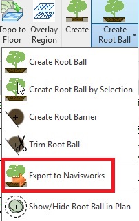 Export to Navisworks is available from the Create Root Ball menu.