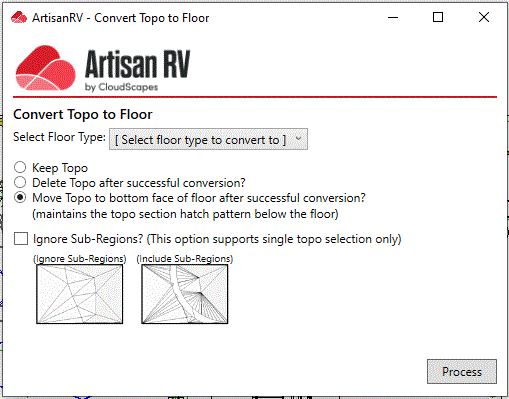 Select a Floor Type as required and pick Process to convert the Topo.