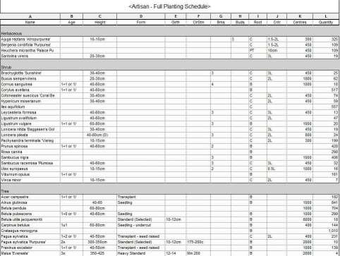 From the Schedules/Quantities area in the Project Browser, select Artisan - Full Planting Schedule