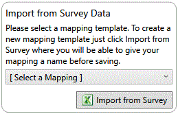 Mapping Existing Tree Survey fields to Revit family parameters can either be carried out manually after picking Import from Survey or by first selecting a pre-defined Mapping file from the Select a Mapping drop-down menu prior to picking Import from Survey.