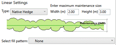 Note that there is an option to define/select a pattern fill to an Ornamental or Native Hedge and the width of the hedge in Plan View is defined generally by the maximum Maintenance Width specified.