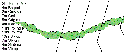 Select Native Hedge from the Type pop-down list to place a less frequently maintained occurrence of a species or mix along a host line, spline or arc.
