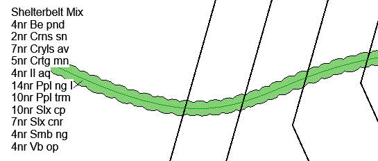 Select Ornamental Hedge from the Type pop-down list to place a regularly maintained occurrence of a species or mix along a host line, spline or arc.