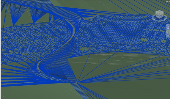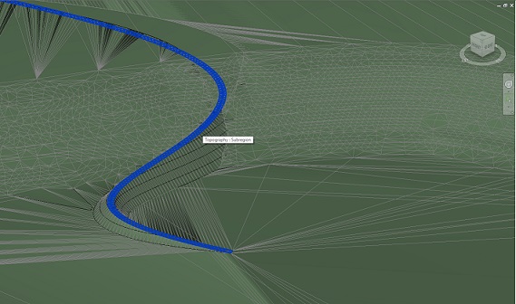 The Linear Path is run under and over the topography to the specified gradient and with the embankment slope following the defined cut and fill angle.
