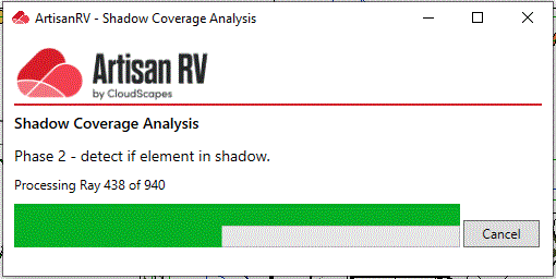 After completion of the two phases of the analysis, the calculated percentage shadow cover for the targeted element is displayed.
