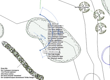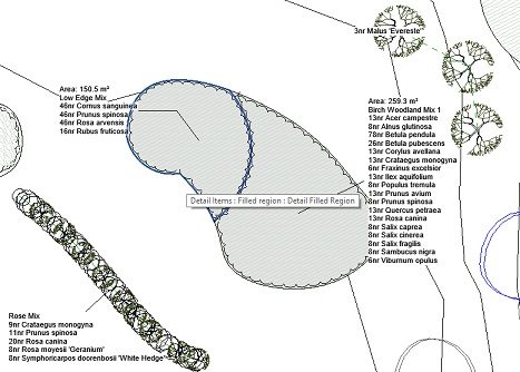 The Split Area Planting tool enables regions, topos and floors to which Area Planting has been applied, to be divided into two separate sub areas. Users are then able to substitute either or both of the new split areas. The Split Area Planting tool supports both Concept and Detailed Planting and may be of particular benefit as a more detail is provided to general arrangments created during early phase work.
