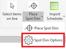 Spot Dim Options is available from the Place Spot Dim pop-down menu.