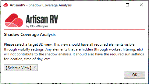 Shadow Regions: Users have the option of creating a Filled Region to represent the shadowed area. If a grpahical output of the calculated shadow coverage is required, pick the Shadow Region option and select a plan view to host the filled region.