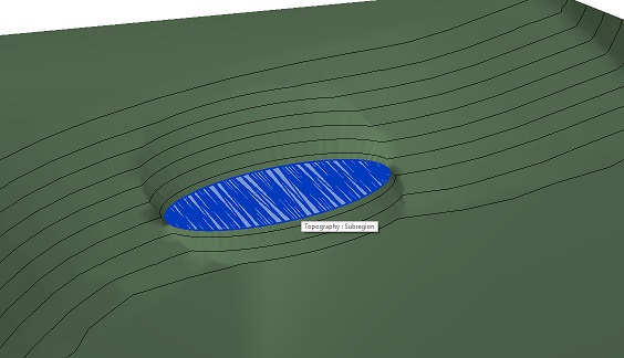 The Area Pad is created in the topography with the embankment slope as defined.