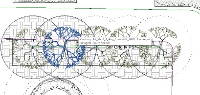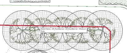 The line of trees below adjoins a road within in which services main run and the inital Create Root Ball command shows the Root Balls extending below the road.