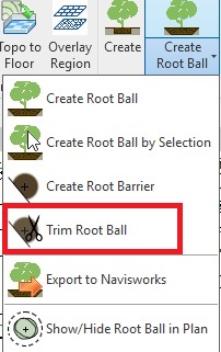 When Trim Root Balls is run each of the trees are selected in turn and the existing Root Balls are trimmed to the new Root Barrier.