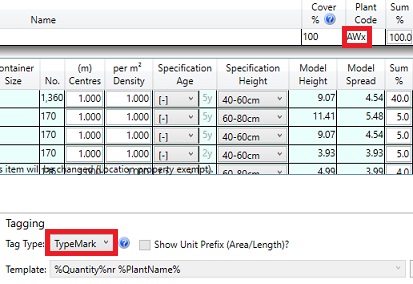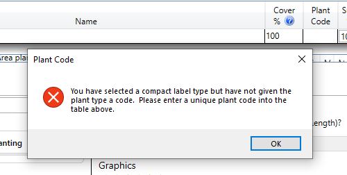 The Compact label option requires a Plant Code to be defined for the individual plant or mix (e,g, AWx below).