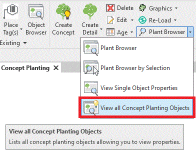 The View all Concept Planting Objects command is available from the Plant Browser pop-dpwn menu.