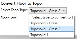 Pick Floor to Topo and select a topo to convert. Multiple items can be selected. Pick Finish to complete selection.