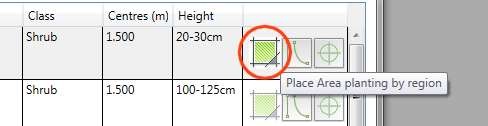 Note that users are able to assign a hatch or colour fill pattern to the area planting by selecting from the pop down menu.