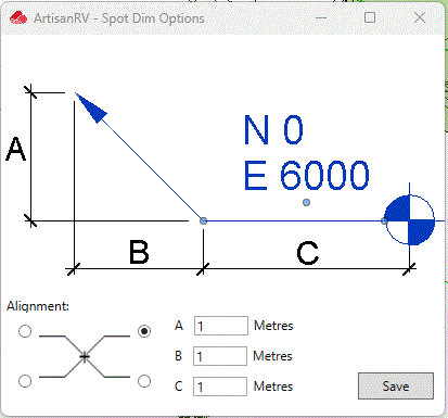 Define the leader alignment sizes required (A,B,C) by entering values in the associated edit boxes.