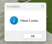 A message is displayed to confirm completion of the filled voids.